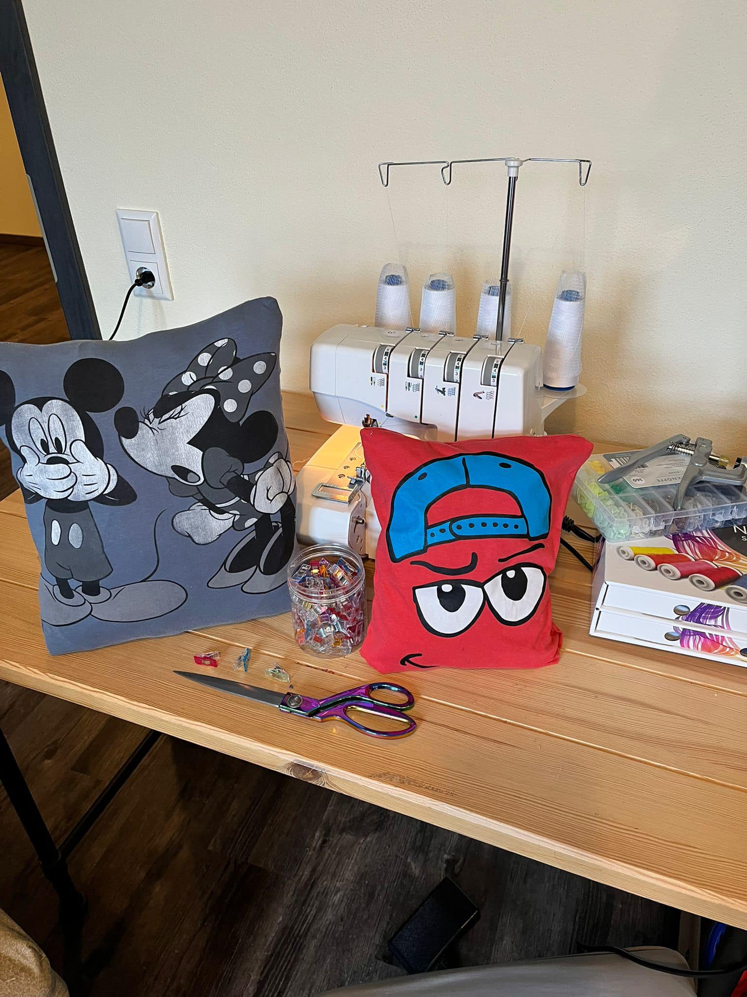 ! Schon mein zweiter Anlauf und nein, ich bin dafür nicht gemacht! Darum ein RIESEN DANKESCHÖN an Mandy Newald und ihren Franz für die Zeit und Geduld beim Workshop heute in der Fronfeste Adorf. Alte T-Shirts sollten ihren Weg zum Kuschelkissen finden. Bei 2 Exemplaren hat es auch mehr oder weniger (-> meins ![]()